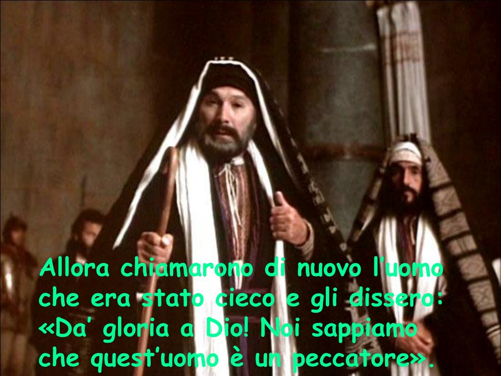 Allora chiamarono di nuovo l’uomo che era stato cieco e gli dissero: «Da’ gloria a Dio! Noi sappiamo che quest’uomo è un peccatore».