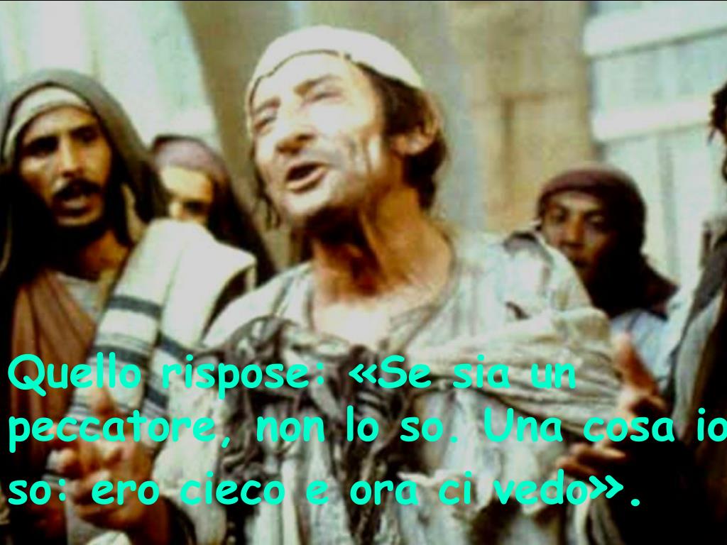 Quello rispose: «Se sia un peccatore, non lo so. Una cosa io so: ero cieco e ora ci vedo».