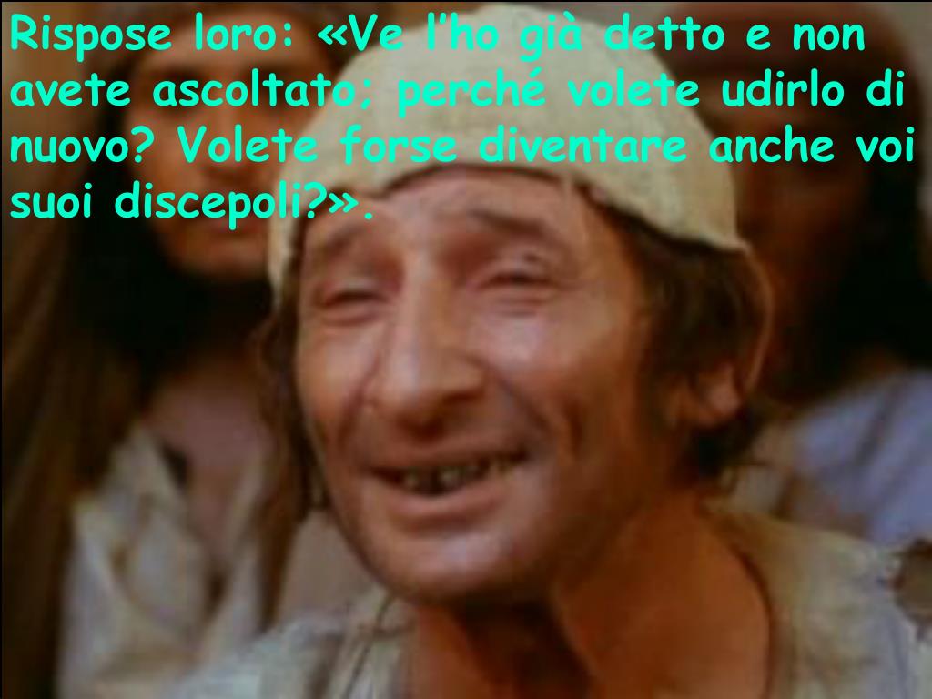 Rispose loro: «Ve l’ho già detto e non avete ascoltato; perché volete udirlo di nuovo? Volete forse diventare anche voi suoi discepoli?».