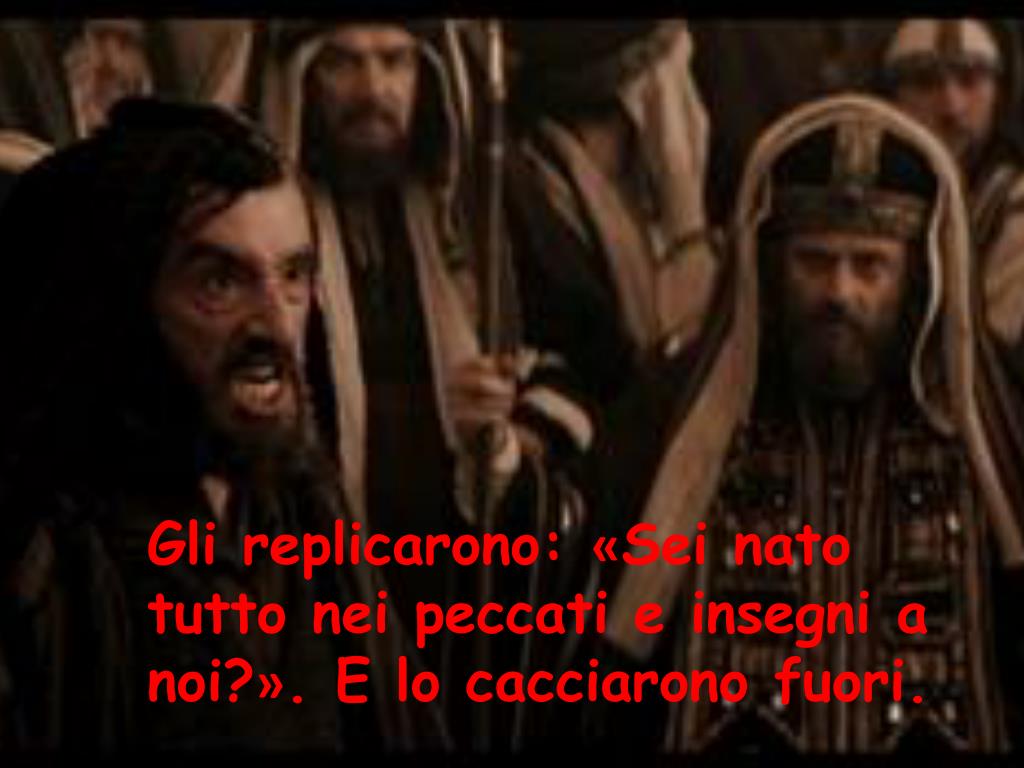 Gli replicarono: «Sei nato tutto nei peccati e insegni a noi?». E lo cacciarono fuori.