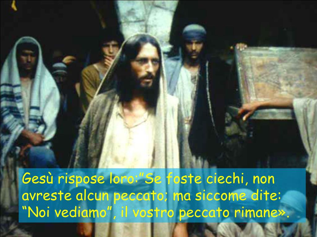 Gesù rispose loro:”Se foste ciechi, non avreste alcun peccato; ma siccome dite: “Noi vediamo”, il vostro peccato rimane».