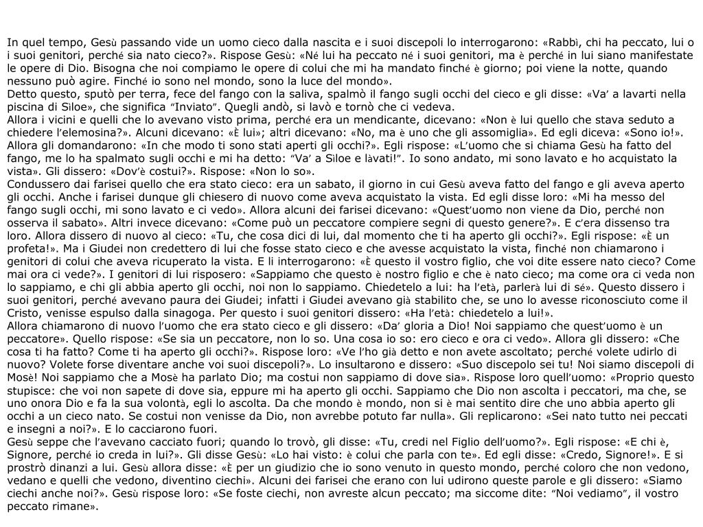 Vangelo di Giovanni In quel tempo, Gesù passando vide un uomo cieco dalla nascita;