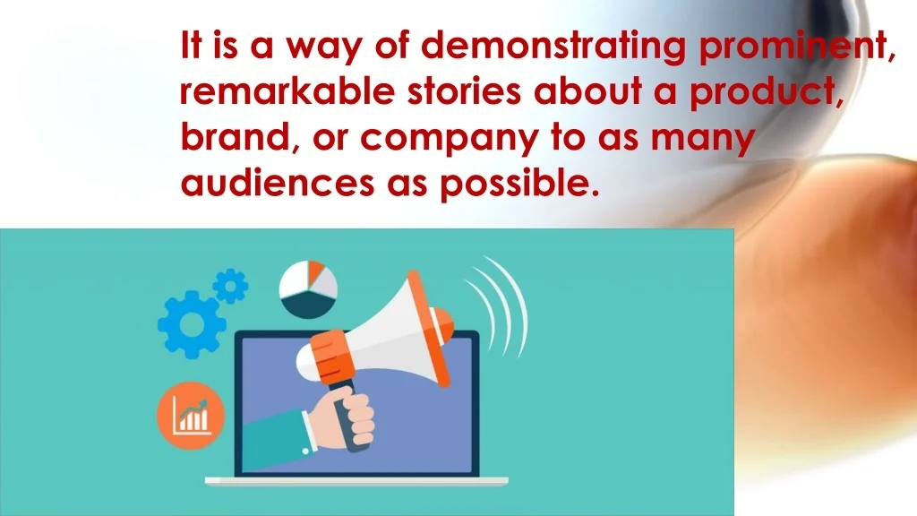 It is a way of demonstrating prominent, remarkable stories about a product, brand, or company to as many audiences as possible.