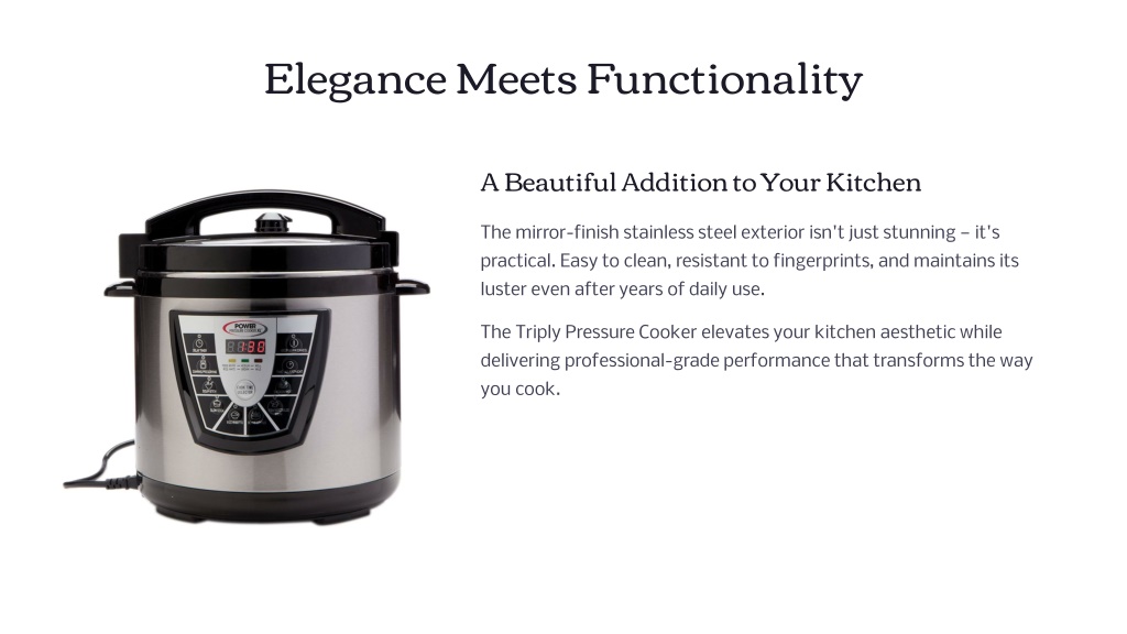 10. Your Kitchen Deserves the Best Unmatched Convenience Proven Safety Superior Taste Cook faster, clean easier, and enjoy more time with family Advanced features protect you and your loved ones Even heat and pressure lock in flavors and nutrients The Triply Pressure Cooker from Pressure Cooker 4U — where durability, performance, and elegance come together. The perfect choice for every modern kitchen.