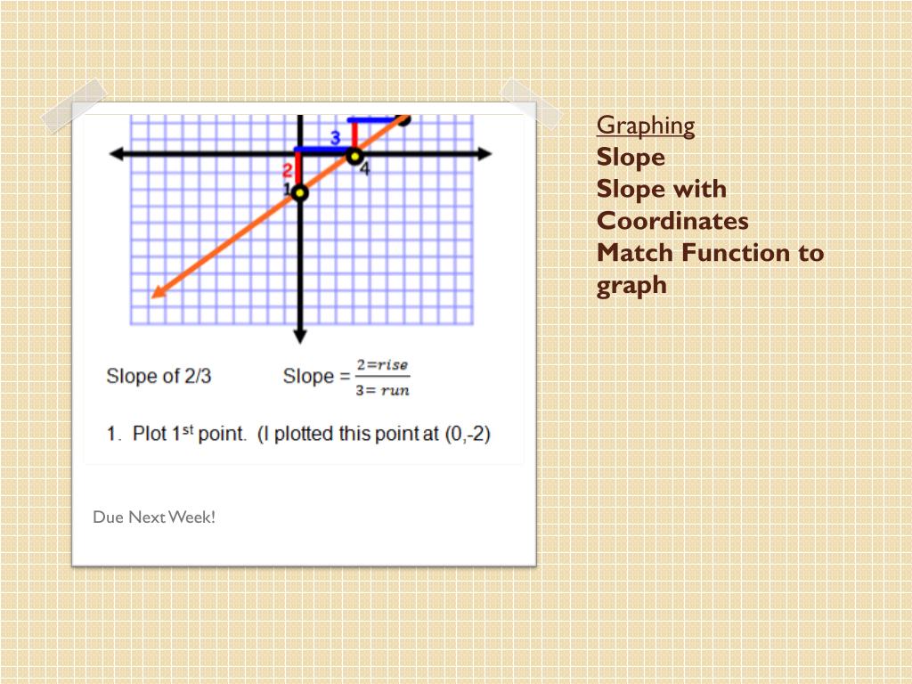 GraphingSlopeSlope with CoordinatesMatch Function to graph Due Next Week!