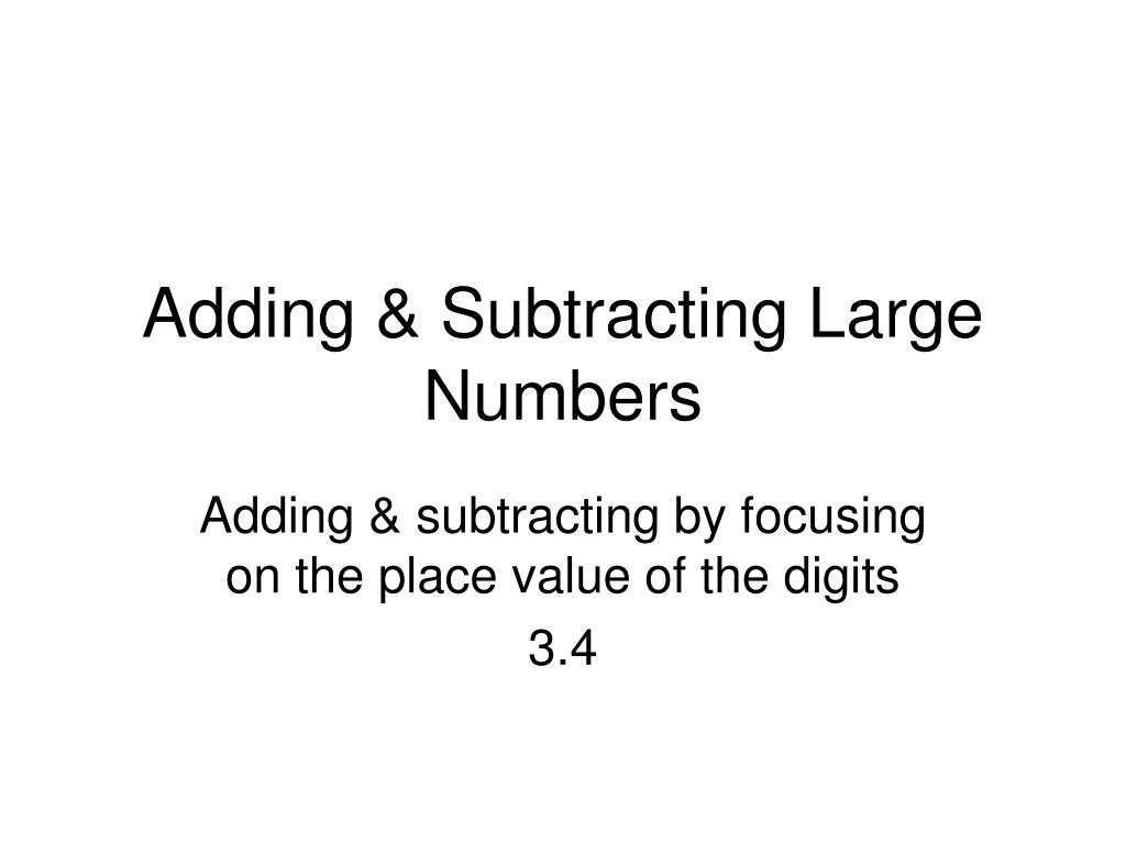 Adding & Subtracting Large Numbers Adding & subtracting by focusing on the place value of the digits 3.4