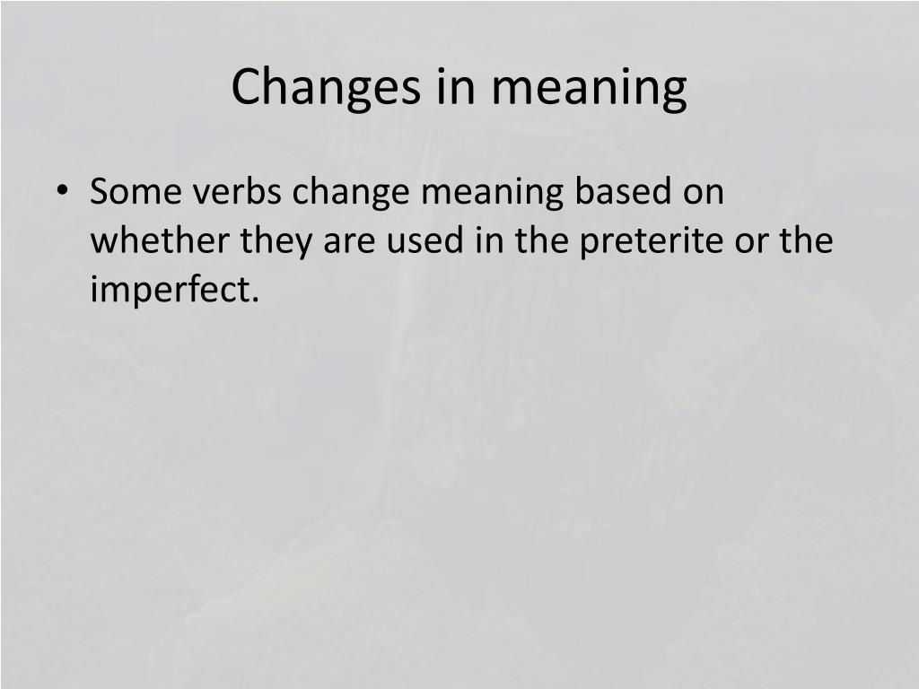 Changes in meaning • Some verbs change meaning based on whether they are used in the preterite or the imperfect.