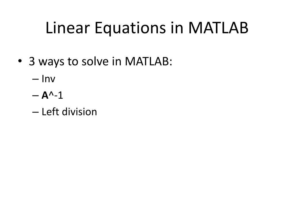 Linear Equations in MATLAB • 3 ways to solve in MATLAB: • Inv • A^-1 • Left division