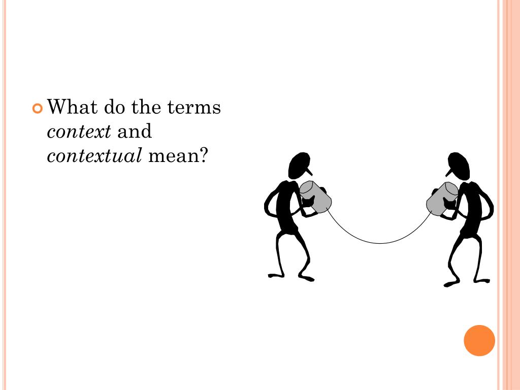 Communication is… Context: A situation, environment Contextual: we behave appropriately in a given situation or environment