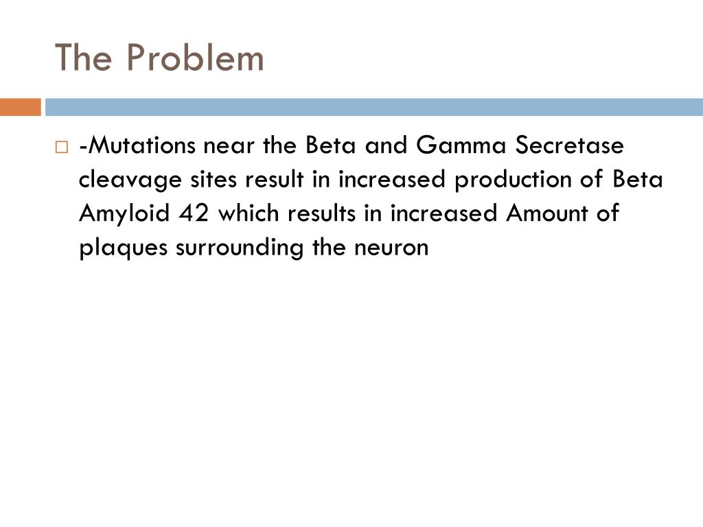 22. The Problem • -Mutations near the Beta and Gamma Secretasecleavage sites result in increased production of Beta Amyloid 42 which results in increased Amount of plaques surrounding the neuron