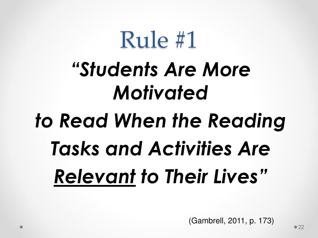 Rule #1 “Students Are More Motivated to Read When the Reading Tasks and Activities Are Relevant to Their Lives” (Gambrell, 2011, p. 173)