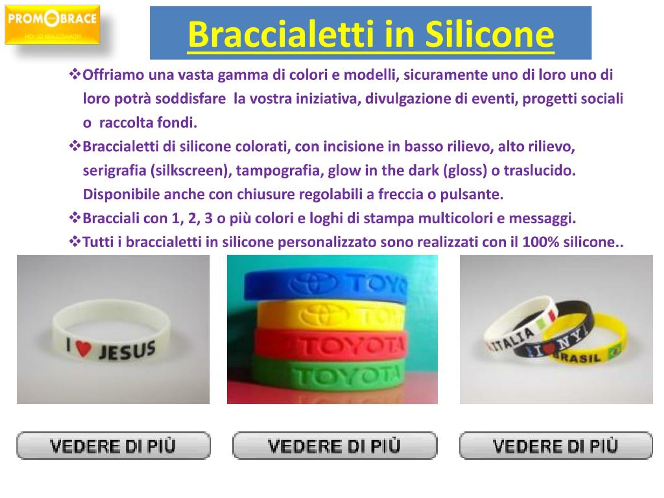 Il prodotto più in voga per promozioni, feste, serate, eventi, società sportive e raccolta fondi, per beneficienza ed eventi religiose. Braccialetti che hanno travolto il mondo.