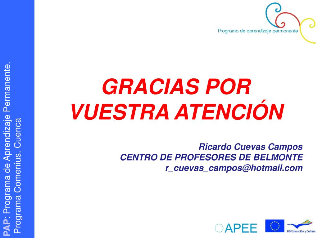 Asss R R r GRACIAS POR VUESTRA ATENCIÓN Ricardo Cuevas Campos CENTRO DE PROFESORES DE BELMONTE r_cuevas_campos@hotmail.com