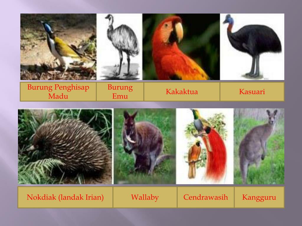 Burung Penghisap Madu Burung Emu Kakaktua Kasuari Nokdiak (landak Irian) Wallaby Cendrawasih Kangguru