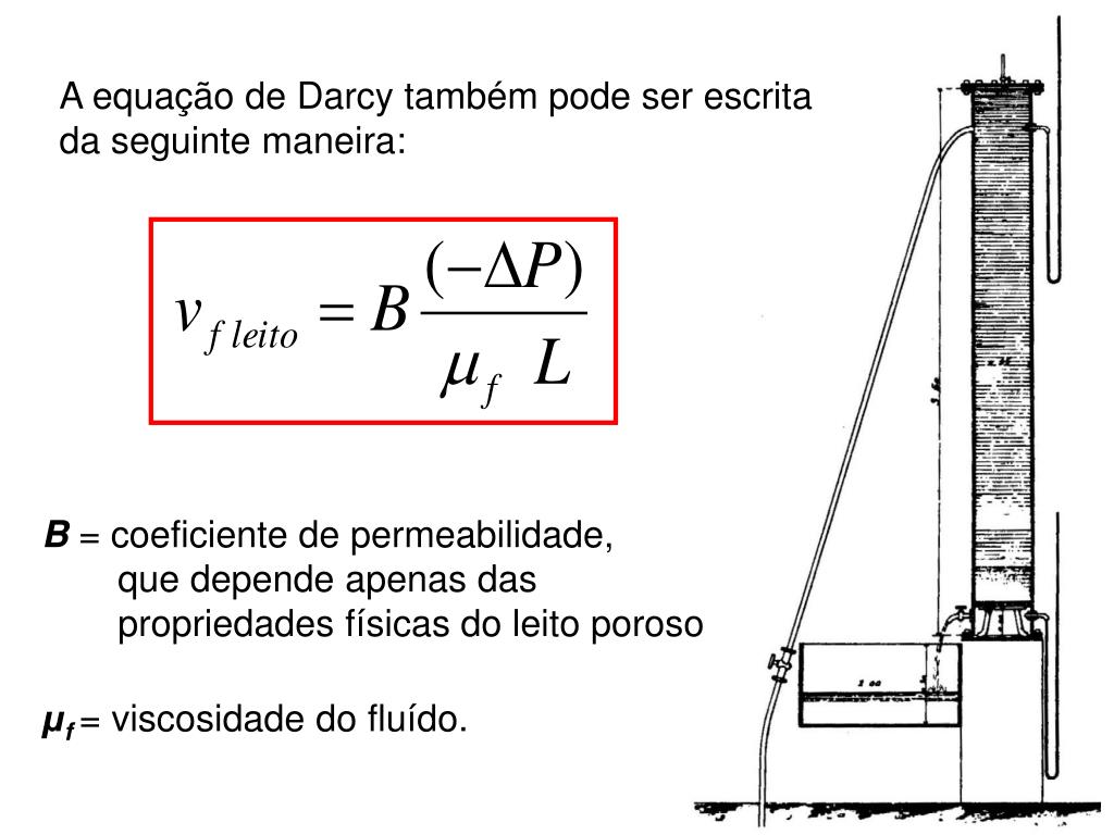 A equação de Darcy também pode ser escrita da seguinte maneira: B= coeficiente de permeabilidade, que depende apenas das propriedades físicas do leito poroso μf = viscosidade do fluído.