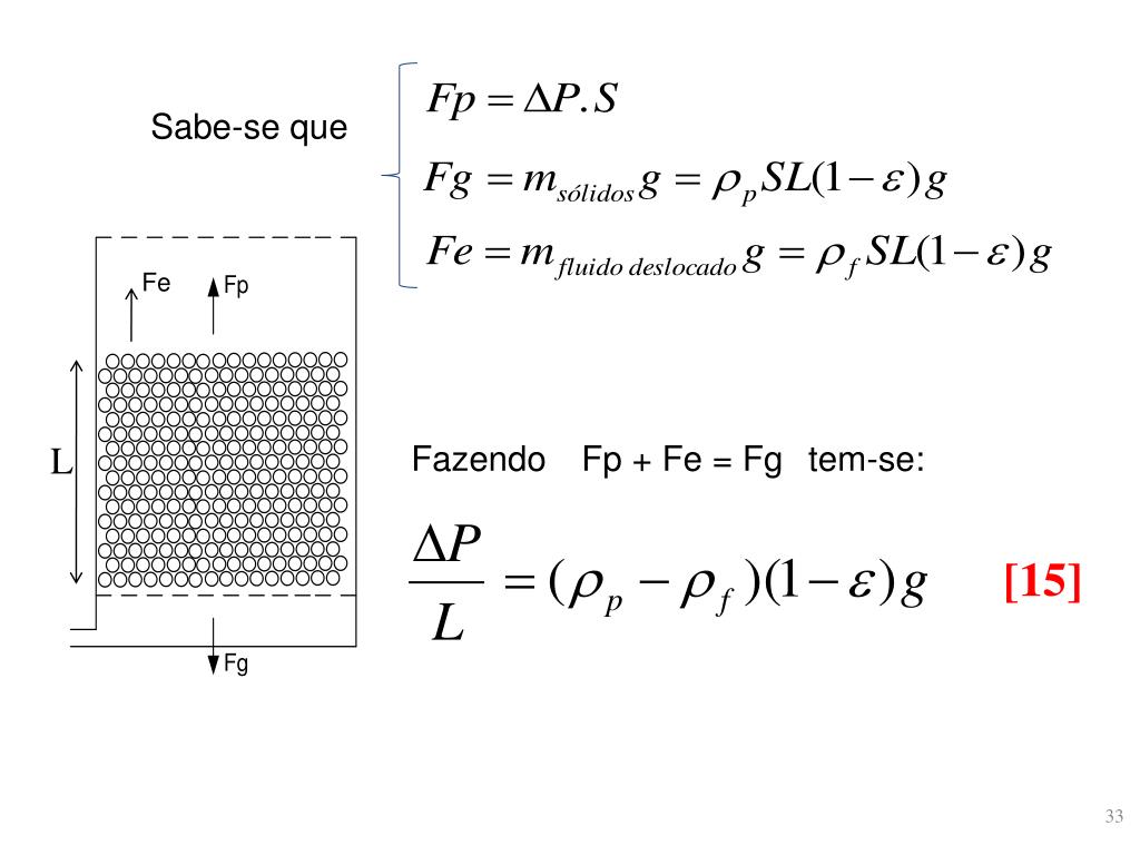 No caso do fluxo através do leito de partículas: s= densidade da partícula sólida f= densidade do fluido v0
