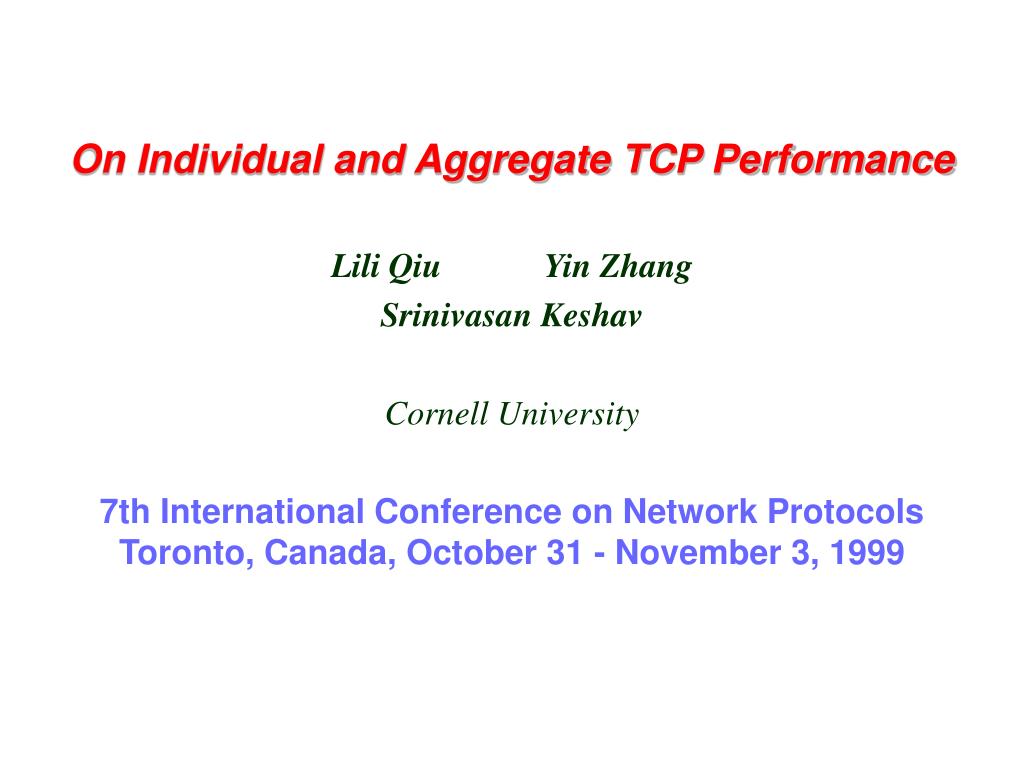 On Individual and Aggregate TCP Performance Lili Qiu Yin Zhang Srinivasan Keshav Cornell University 7th International Conference on Network ProtocolsToronto, Canada, October 31 - November 3, 1999