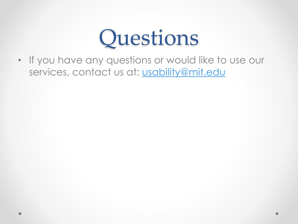 Questions • If you have any questions or would like to use our services, contact us at: usability@mit.edu