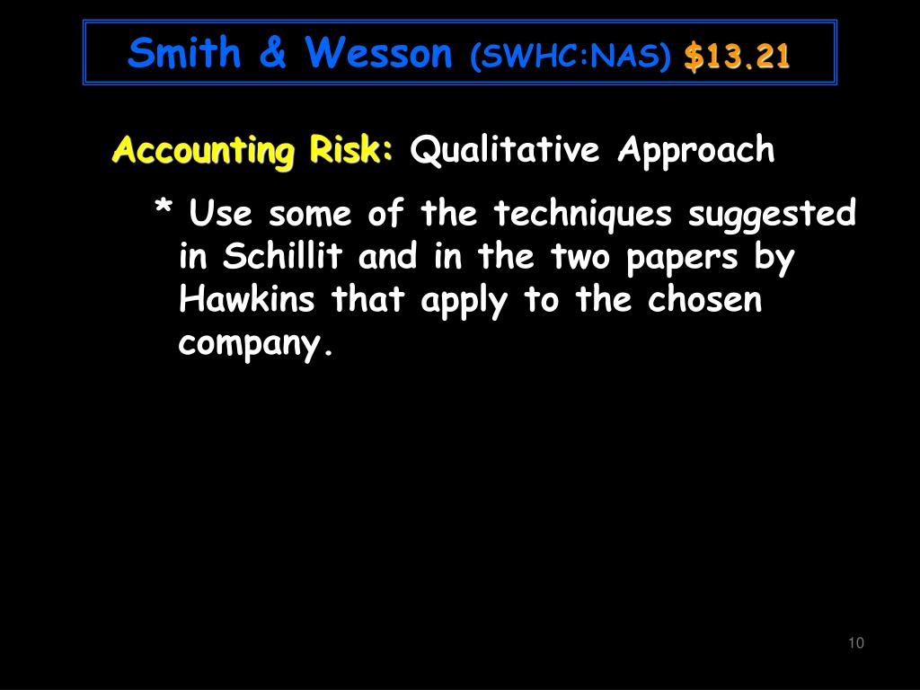 Smith & Wesson (SWHC:NAS)$13.21 Accounting Risk: Qualitative Approach * Use some of the techniques suggested in Schillit and in the two papers by Hawkins that apply to the chosen company.