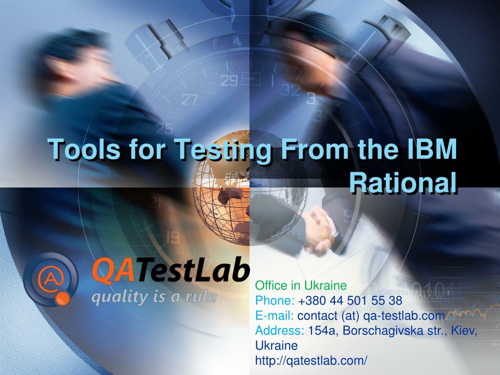 Tools for Testing From the IBM Rational Office in Ukraine Phone: +380 44 501 55 38 E-mail: contact (at) qa-testlab.com Address: 154а, Borschagivska str., Kiev, Ukraine http://qatestlab.com/