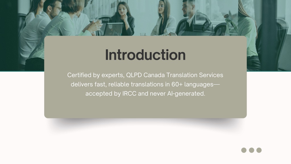 Introduction Certified by experts, QLPD Canada Translation Services delivers fast, reliable translations in 60+ languages— accepted by IRCC and never AI-generated.
