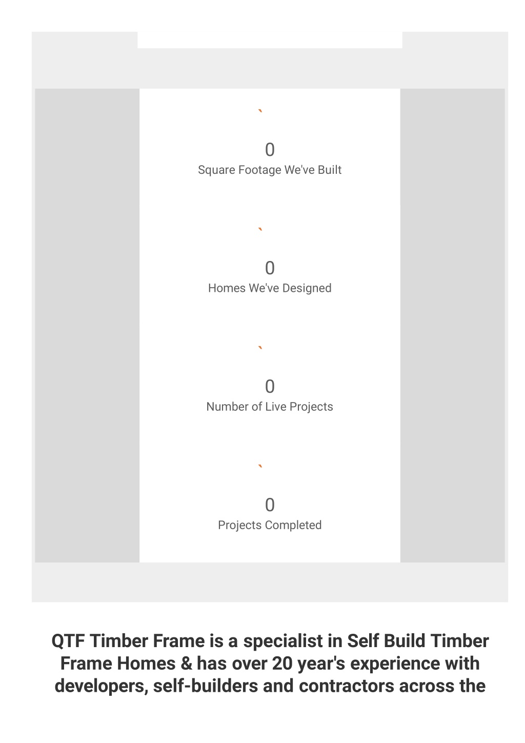 0 Square Footage We've Built 0 Homes We've Designed 0 Number of Live Projects 0 Projects Completed QTF Timber Frame is a specialist in Self Build Timber Frame Homes & has over 20 year's experience with developers, self-builders and contractors across the