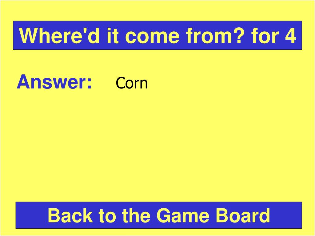 Where'd it come from? for 4 Answer: Corn Back to the Game Board