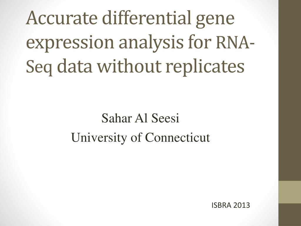 Accurate differential gene expression analysis for RNA-Seqdata without replicates Sahar Al Seesi University of Connecticut ISBRA 2013