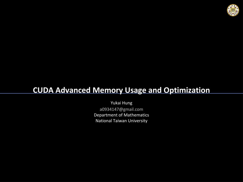 CUDA Advanced Memory Usage and Optimization YukaiHung a0934147@gmail.comDepartment of MathematicsNational Taiwan University