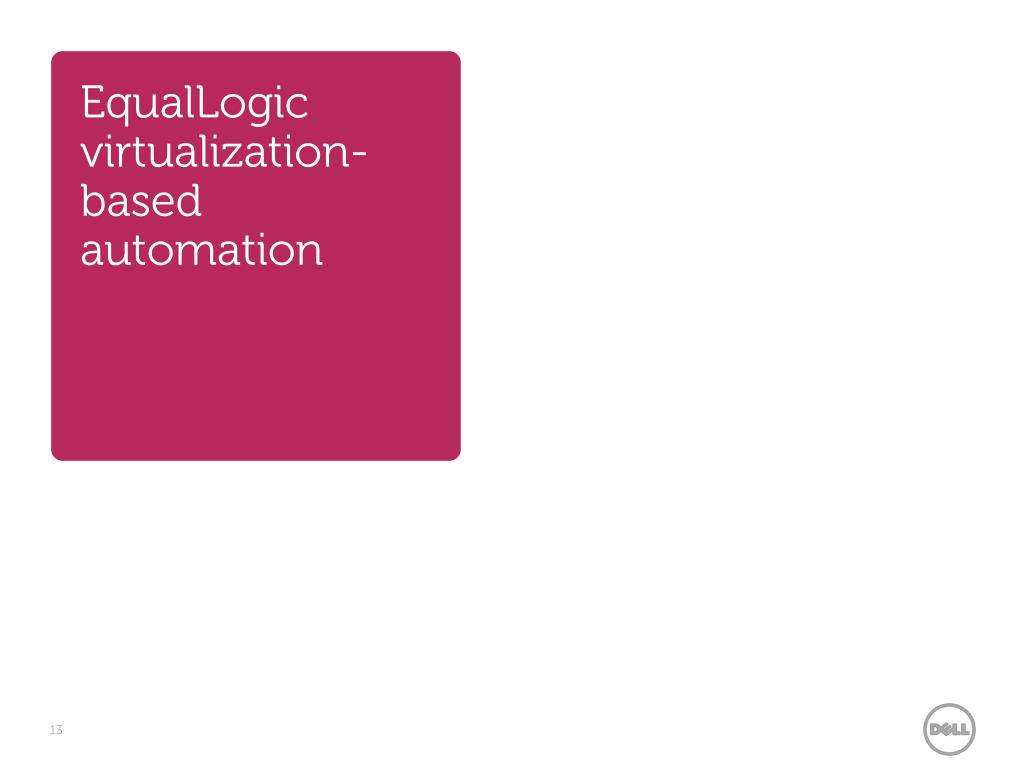 Simplify operations, support applications and control costs with EqualLogic storage, through: Advanced investment protection Virtualization-based automation OS & application integration 26