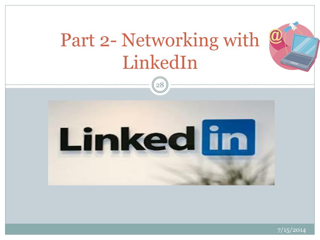 LinkedIn tips • Networking with strangers - http://www.careerealism.com/tips-networking-strangers-linkedin/ • LinkedIn tips -http://www.emilypost.com/category-blog-layout/991-networking-tips-for-linkedin • Networking ideas - http://www.linkedin.com/today/post/article/20130415115825-15077789-9-networking-secrets-from-a-superconnector