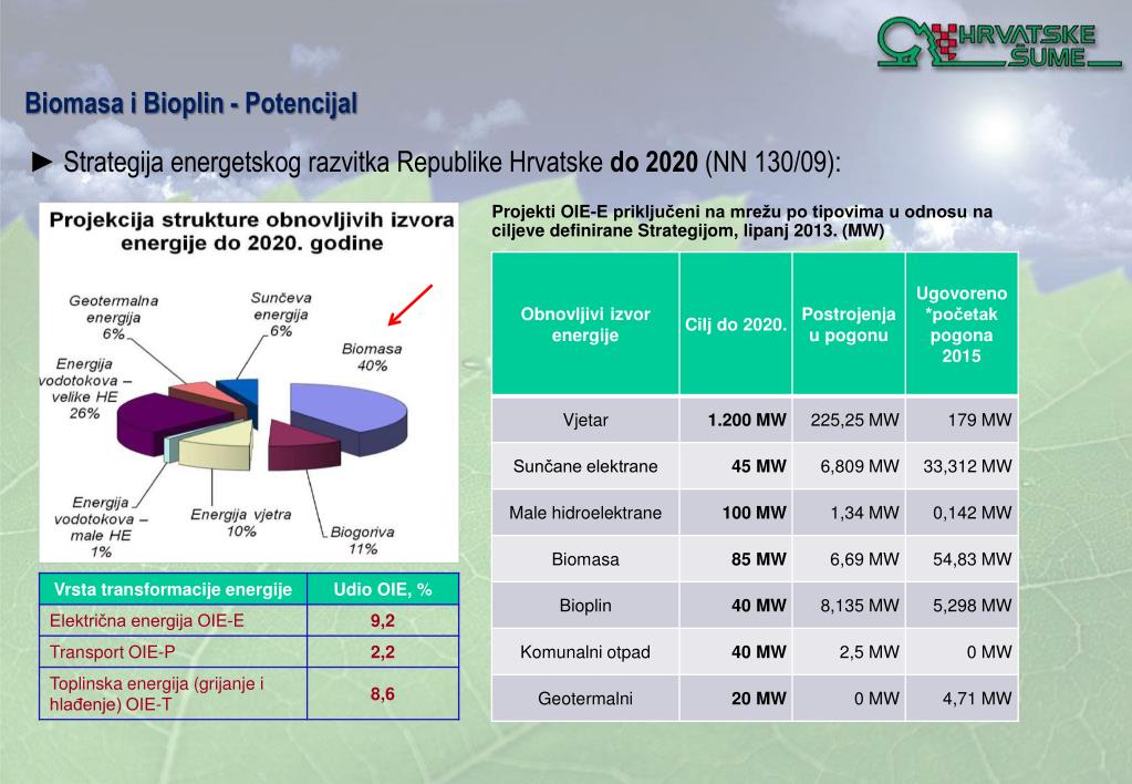 PROIZVODNJA ELEKTRIČNE ENERGIJE IZ DRVNOG OSTATKA • 1 kg drva pri sadržaju vlage 10 % daje 4,1 kWh energije • 520.000 T x 4,1 kWh = 2.132.000 MWh (2,132 GWh) • od čega je oko 20 % elektroenergije: 426.000 MWh (426 GWh) • i oko 80 % toplinske energije: 1.706.000 MWh