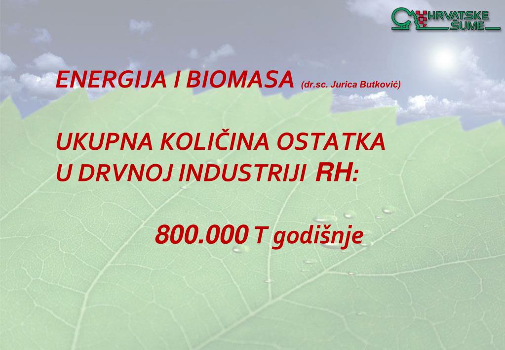 ENERGIJA I BIOMASA (dr.sc. Jurica Butković)UKUPNA KOLIČINA OSTATKAU DRVNOJ INDUSTRIJI RH:800.000 T godišnje
