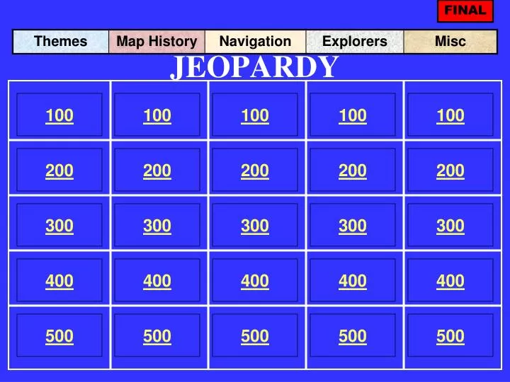 FINAL JEOPARDY 100 100 100 100 100 200 200 200 200 200 300 300 300 300 300 400 400 400 400 400 500 500 500 500 500