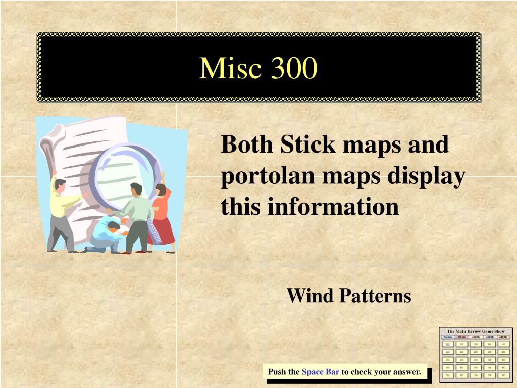 Misc 300 Both Stick maps and portolan maps display this information Wind Patterns Push the Space Bar to check your answer.