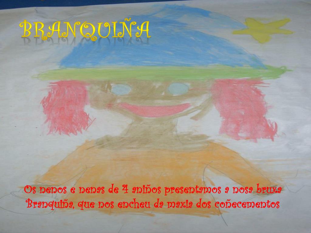 branquiña Os nenos e nenas de 4 aniños presentamos a nosa bruxa Branquiña, que nos encheu da maxia dos coñecementos