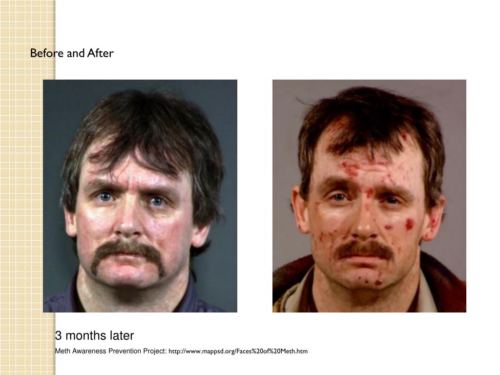 Before and After 3 months later Meth Awareness Prevention Project: http://www.mappsd.org/Faces%20of%20Meth.htm