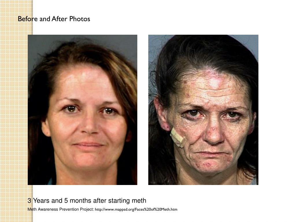 Before and After Photos 3 Years and 5 months after starting meth Meth Awareness Prevention Project: http://www.mappsd.org/Faces%20of%20Meth.htm