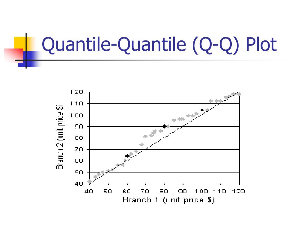 Quantile-Quantile (Q-Q) Plot • Graphs the quantiles of one univariate distribution against the corresponding quantiles of another • Allows the user to view whether there is a shift in going from one distribution to another