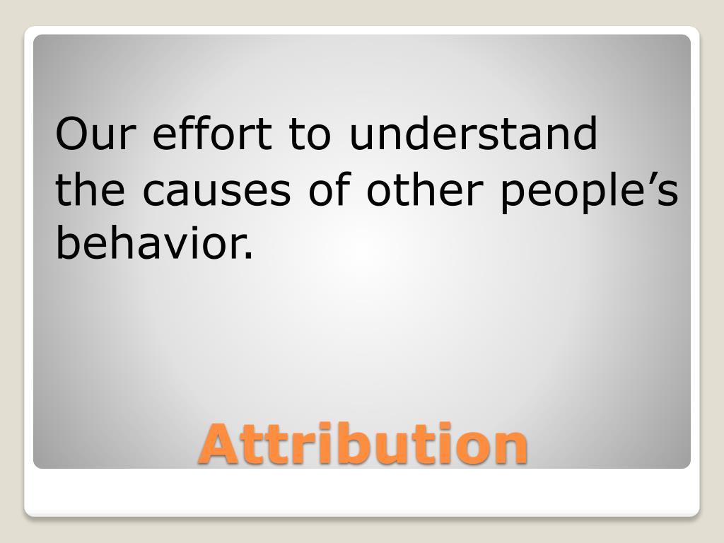 Dispositional Attribution External Attribution • View others behavior as related to their internal characteristics • View others behavior as related to their environment or the situation