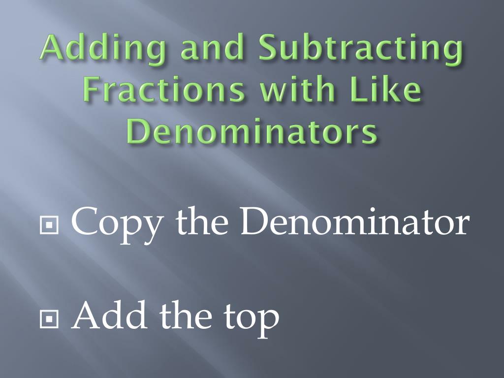 Adding and Subtracting Fractions with Like Denominators • Copy the Denominator • Add the top