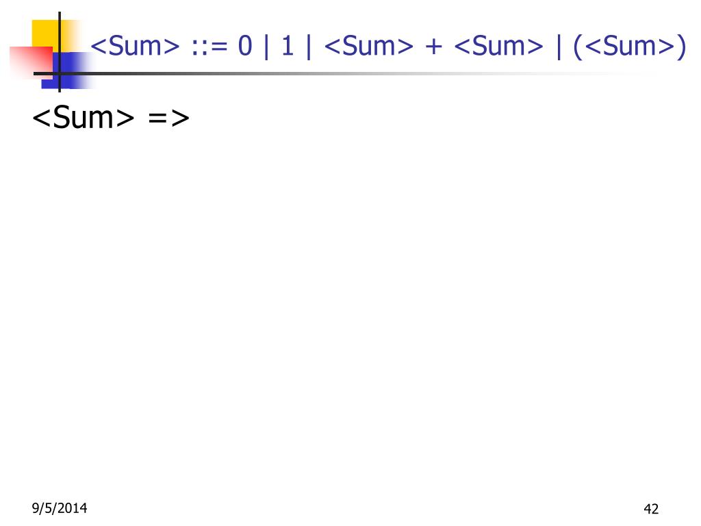 BNF Derivations • Pick a non-terminal <Sum> =>