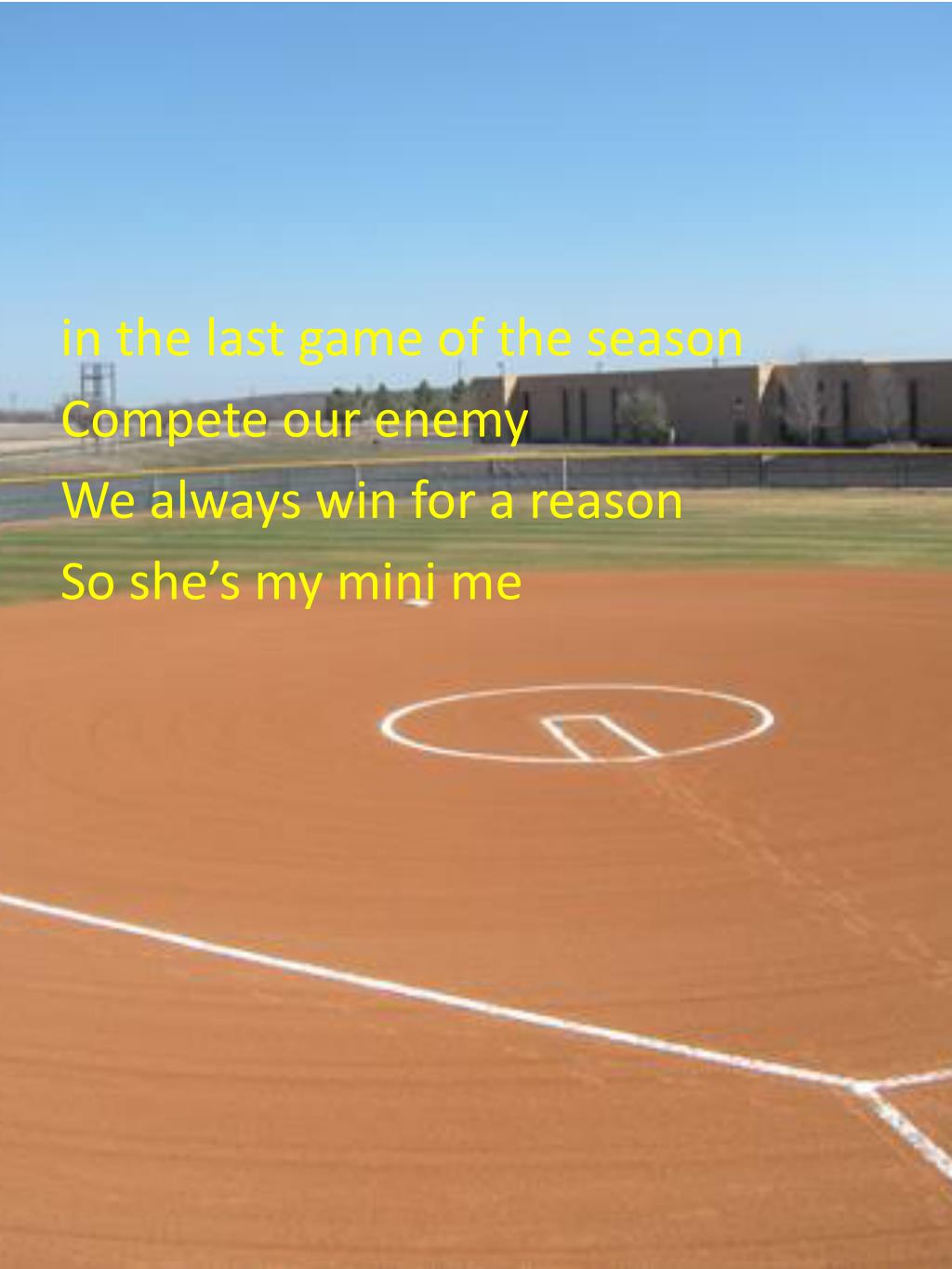 in the last game of the season Compete our enemy We always win for a reason So she’s my mini me