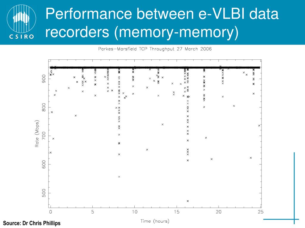 Performance between e-VLBI data recorders (memory-memory) Source: Dr Chris Phillips