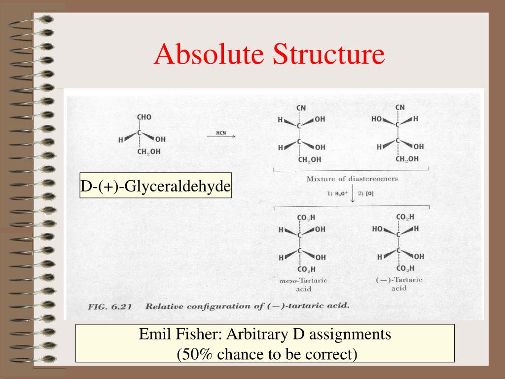 Absolute Structure D-(+)-Glyceraldehyde Emil Fisher: Arbitrary D assignments (50% chance to be correct)