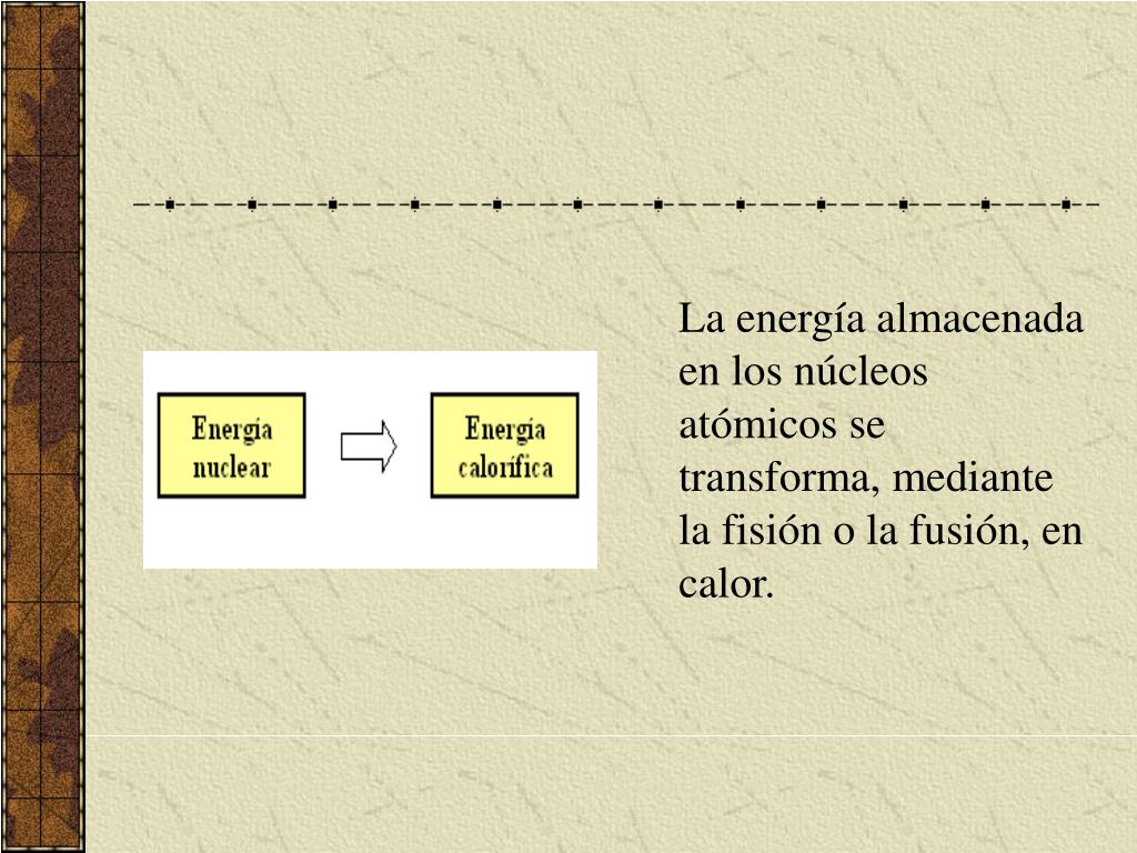 La energía almacenada en los núcleos atómicos se transforma, mediante la fisión o la fusión, en calor.