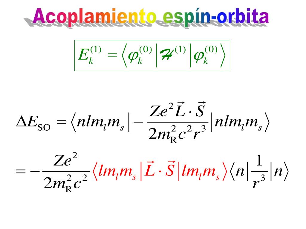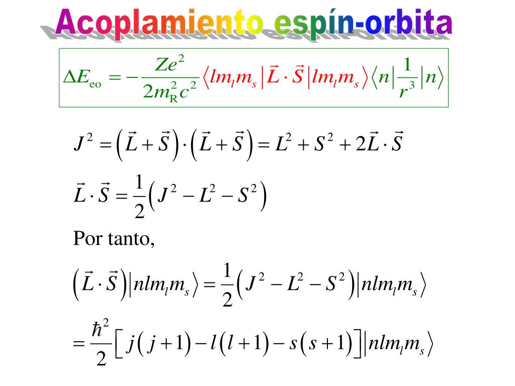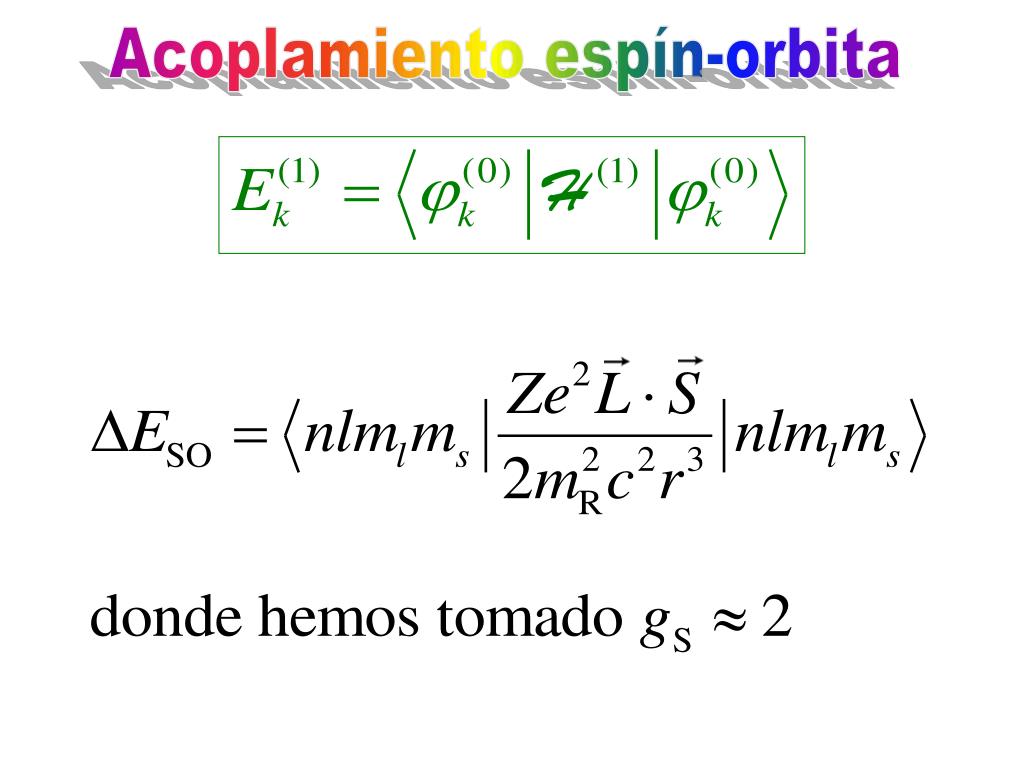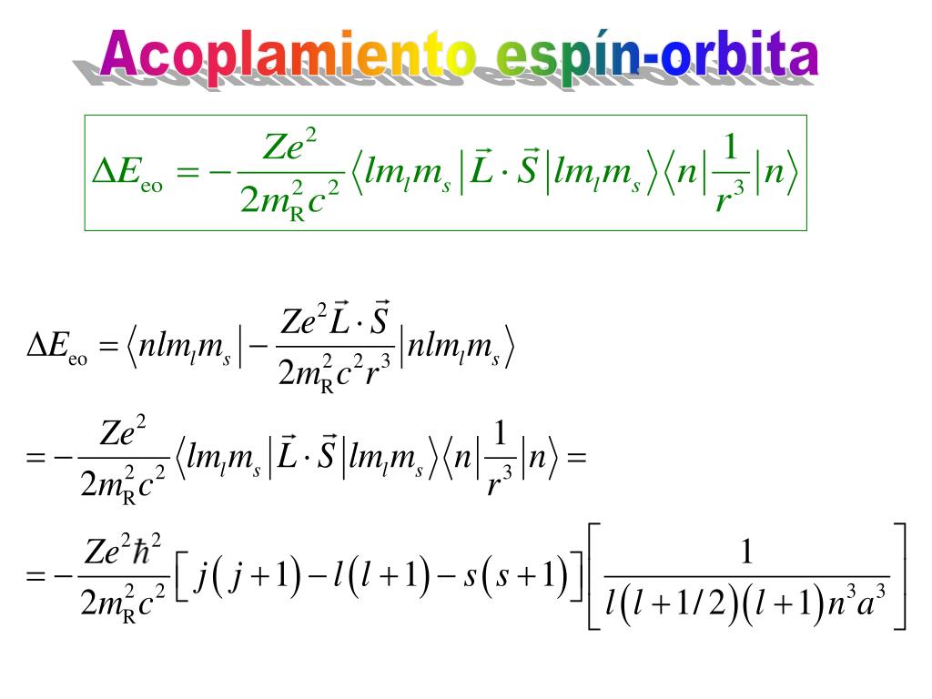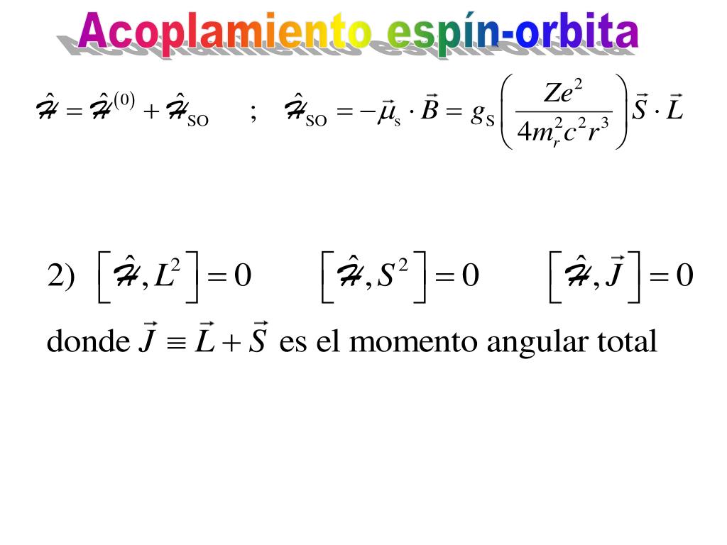 Acoplamiento espín-orbita La estructura fina del átomo de hidrógeno (pequeño desdoblamiento de las líneas espectrales) se debe a la interacción entre el espín S del electrón y el momento angular orbital L