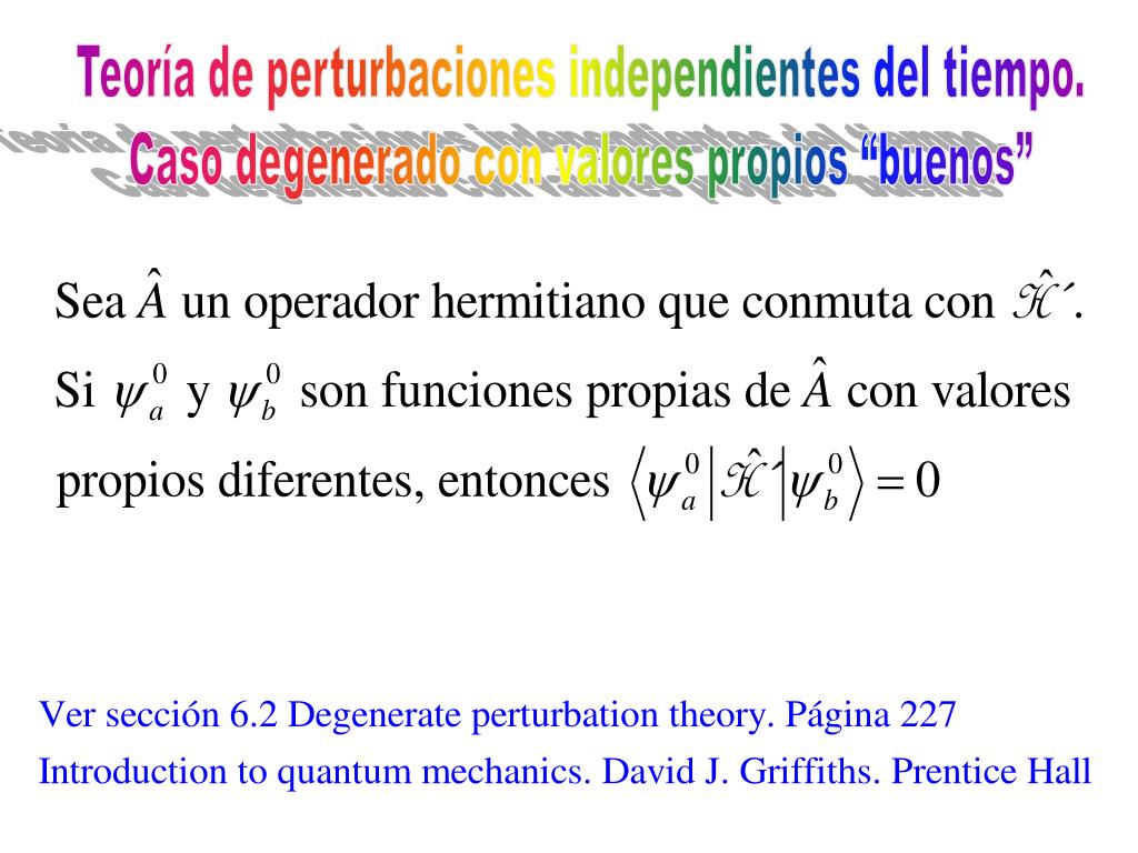 Teoría de perturbaciones independientes del tiempo. Caso degenerado con valores propios “buenos”