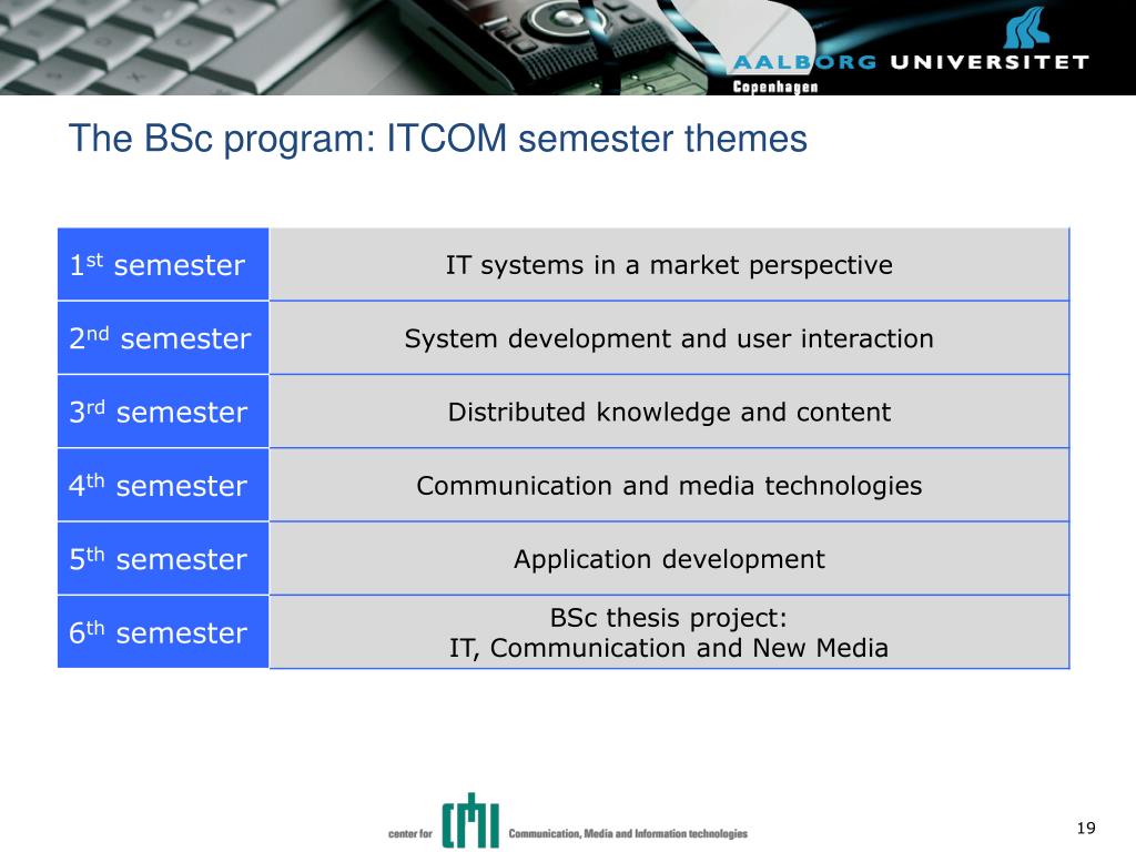 ITCOM – Bumber stickers • Interdisciplinary education • The education combines expertise in IT, Communication and new media with knowledge in markets and organisations • Problem based education • The education builds on the Aalborg model, where project work is an important part of the learning • International education • The education is offered in English in order to attract international students • The education is offered in co-operation with Copenhagen Engineering School • It is possible to continue on your studies on a master education e.g. Innovative Communication Technologies and Entrepreneurship