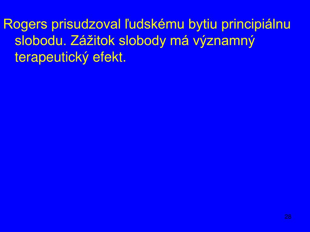 Rogers prisudzoval ľudskému bytiu principiálnu slobodu. Zážitok slobody má významný terapeutický efekt.